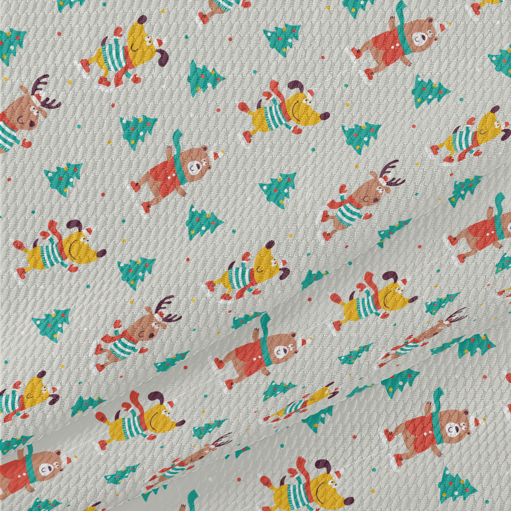 Animals Skating On Christmas D Birdseye Piqué