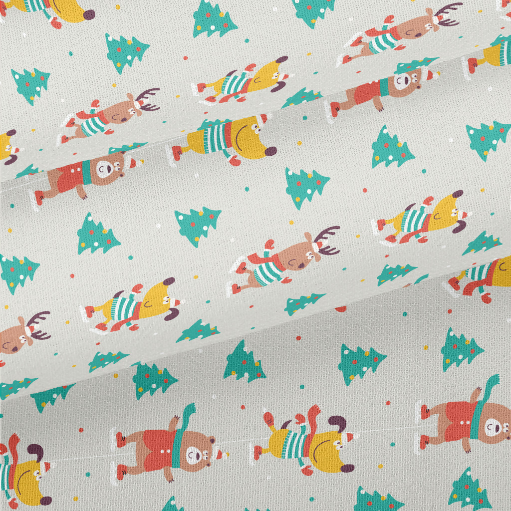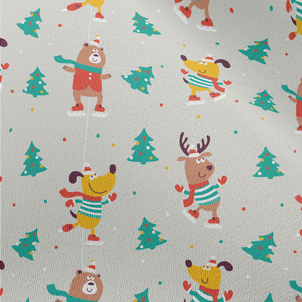 Animals Skating On Christmas D Chiffon