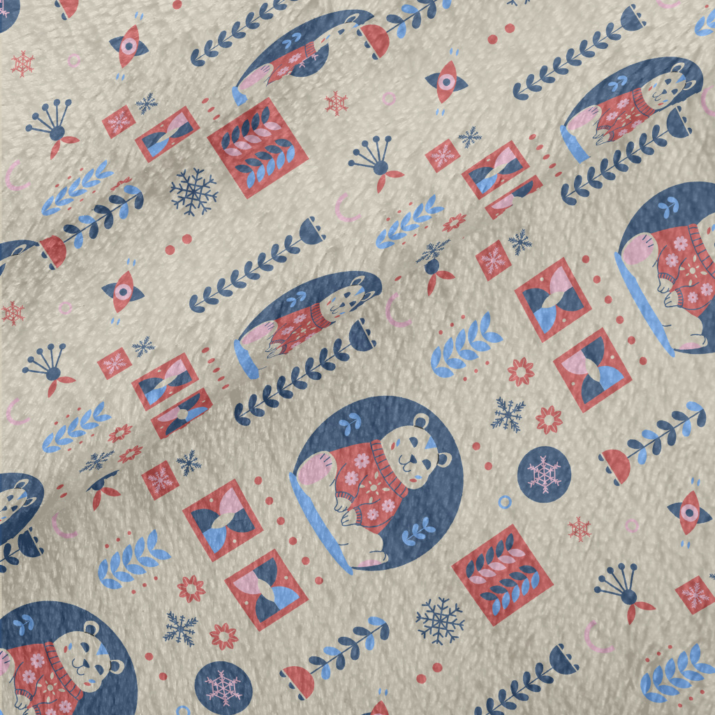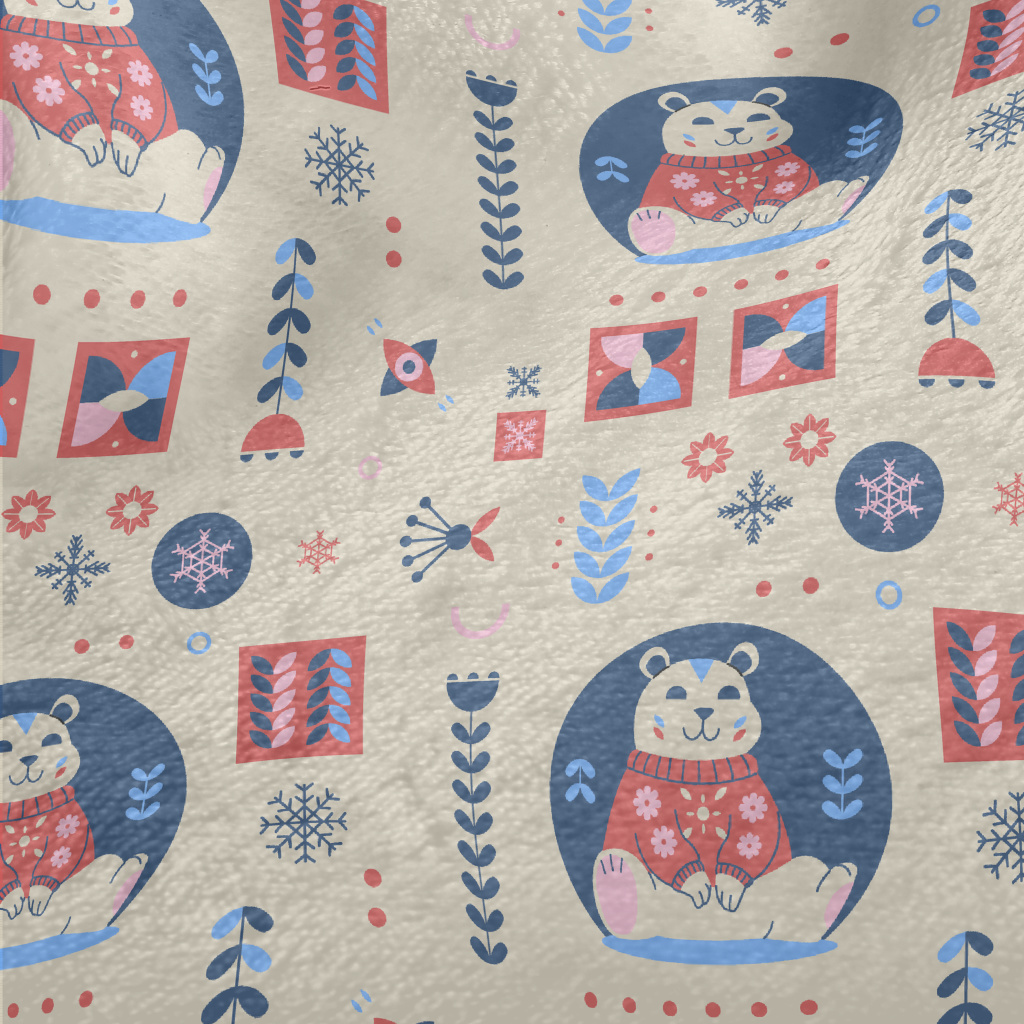 Snowflakes And Cute Polar Bear Minky