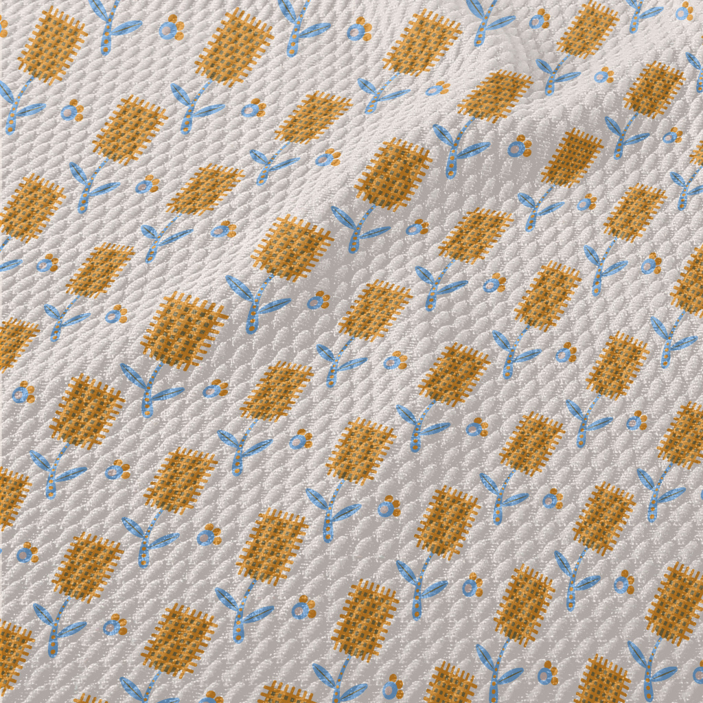 Autumn Yellow Flowers Birdseye Piqué