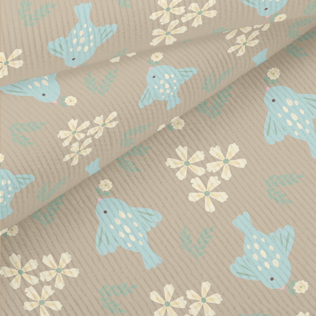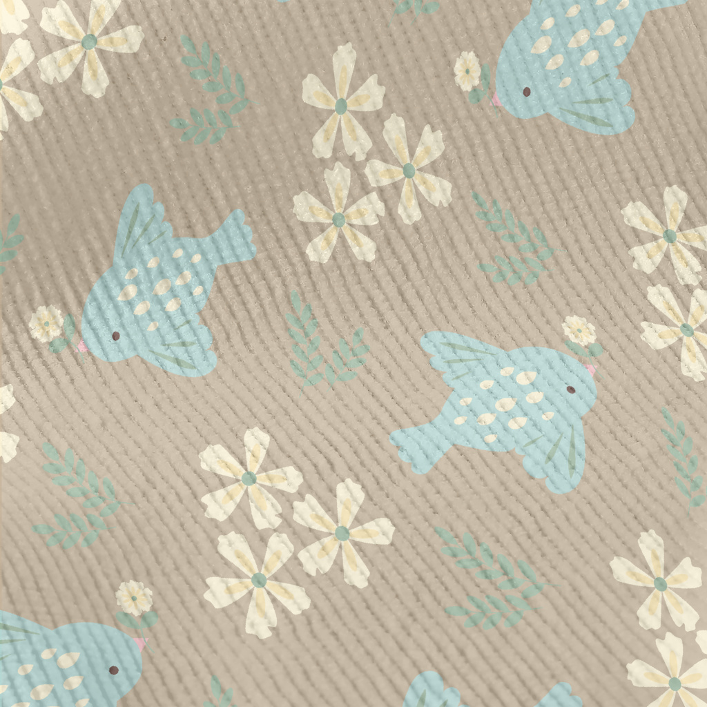 Blue Bird And Flowers Standard Corduroy