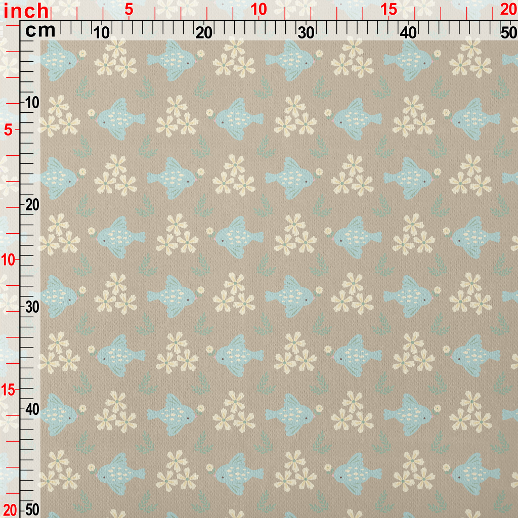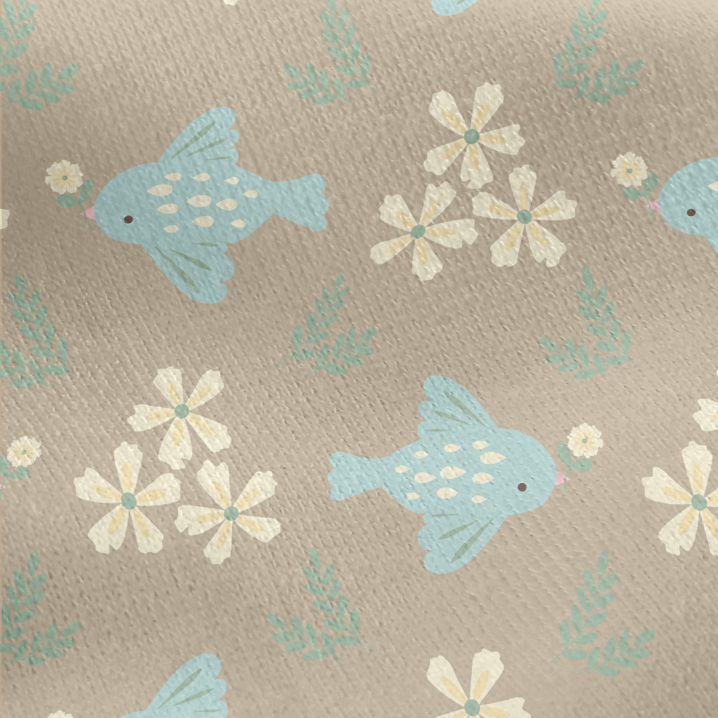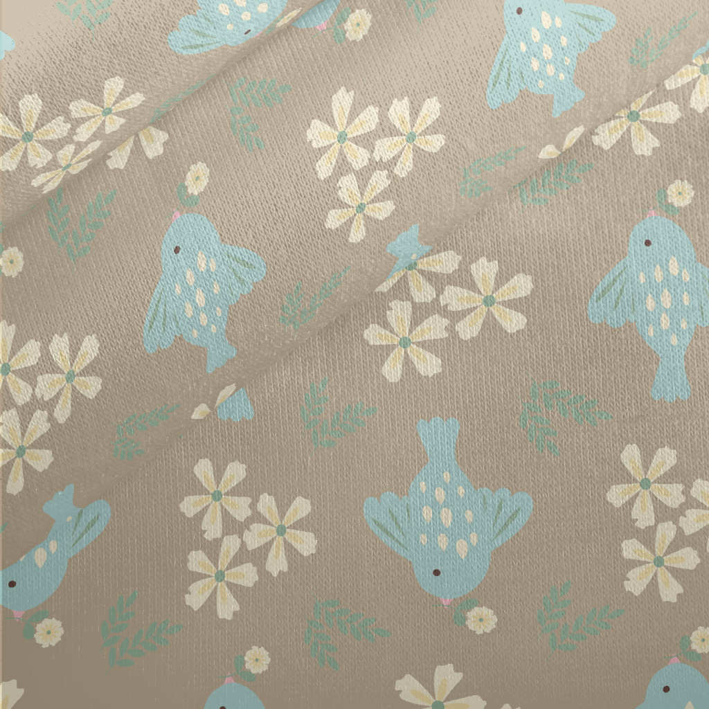 Blue Bird And Flowers Jersey Backed Fleece
