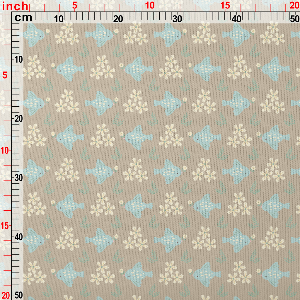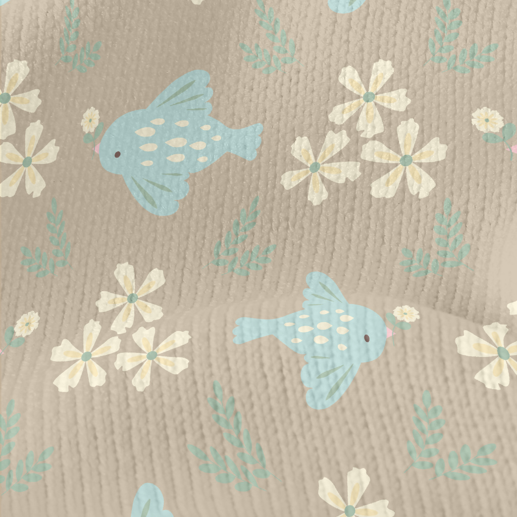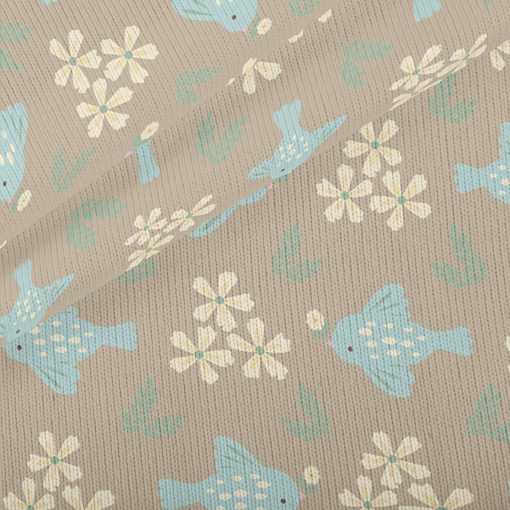 Blue Bird And Flowers Stretch Jersey