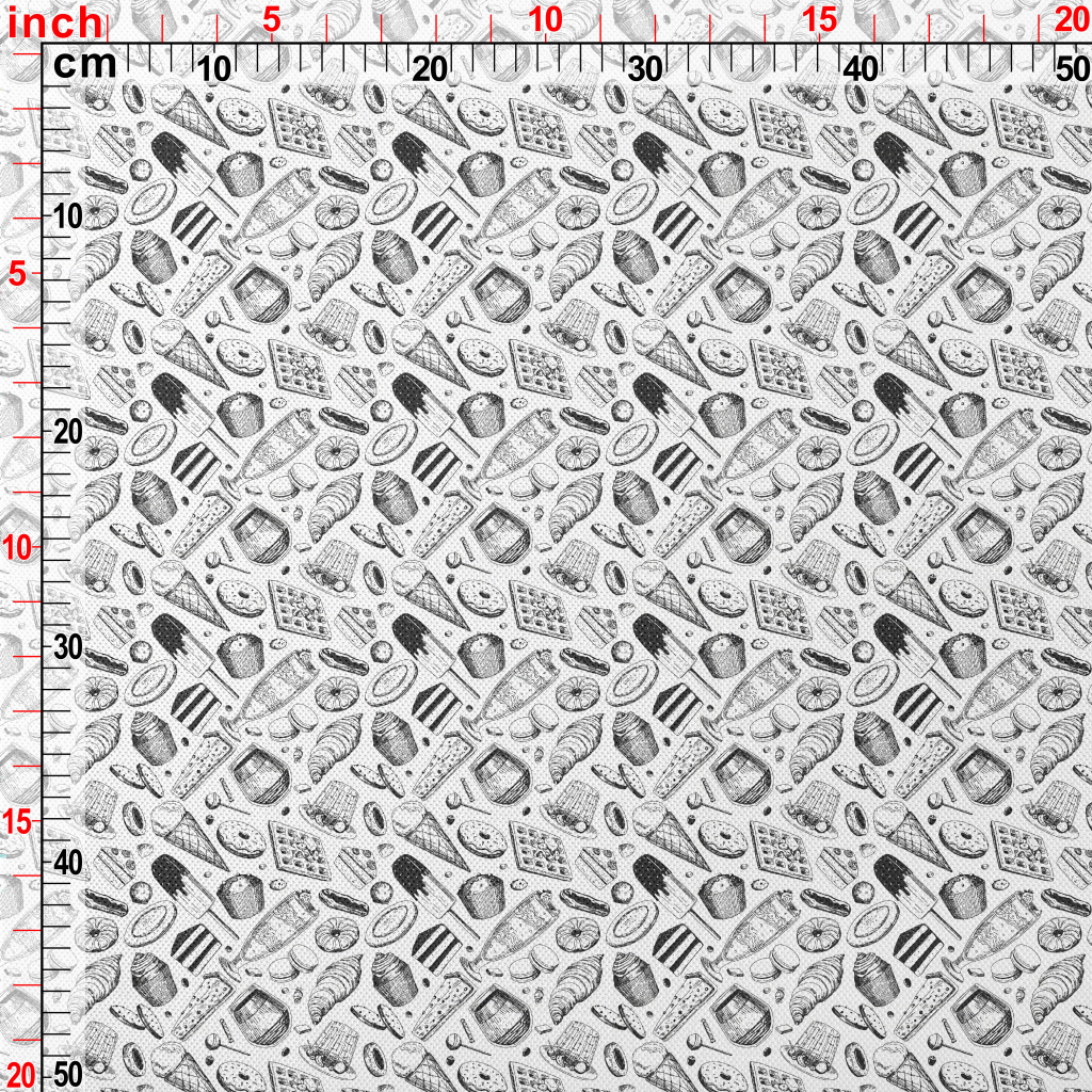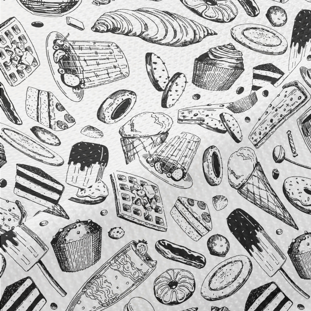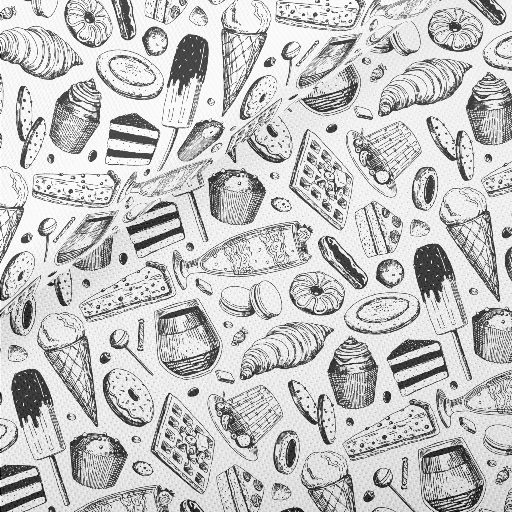 Black And White Sketch Dessert Piqué
