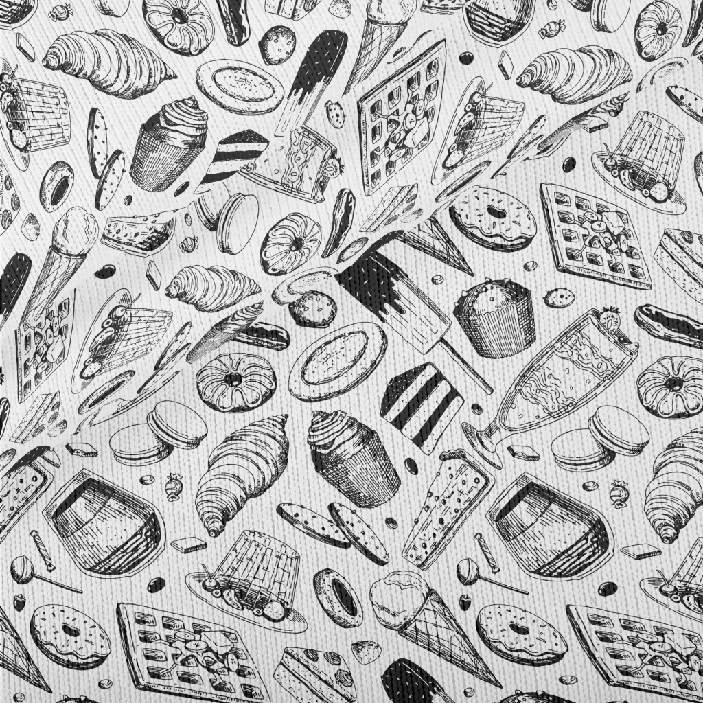 Black And White Sketch Dessert Stretch Jersey