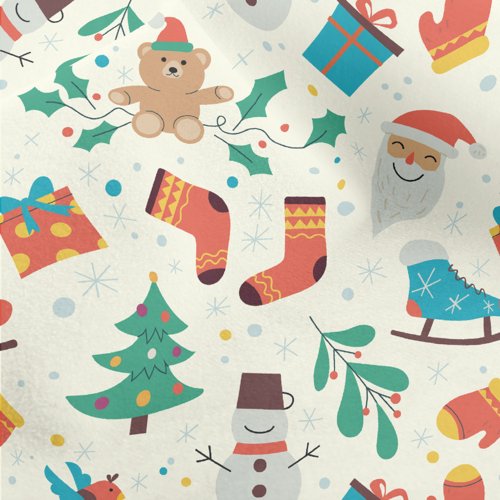 Santa Claus, Snowmen, And Gift Micro Fleece